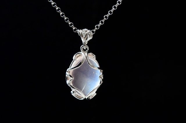 ・このペンダントに使用しているのは透明度の高いカルセドニー質のもので、アクセサリーというより、ジュエリーと呼ぶにふさわしいものです。